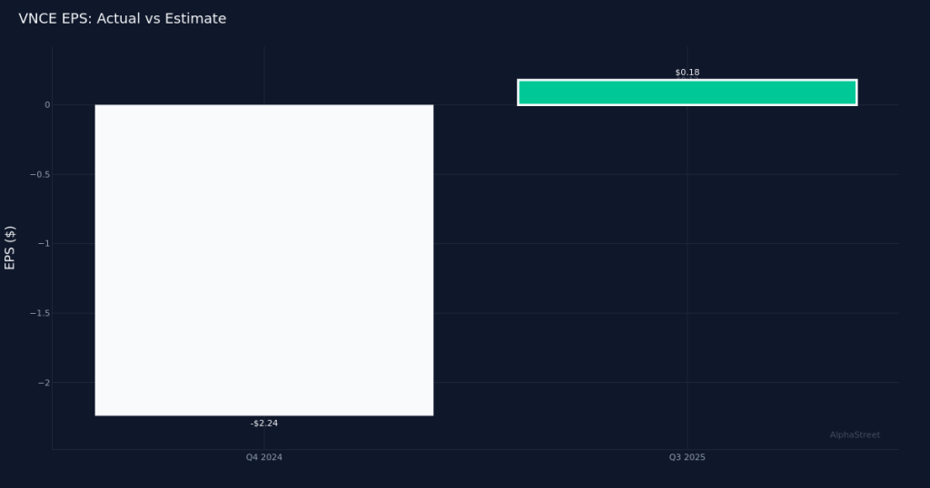 Vince Holding Corp. reported better-than-expected fourth quarter results, with adjusted earnings of $0.18 per share handily surpassing analysts’ forecast of $0.13 per share. The 38.5% earnings beat signals improved execution at the contemporary fashion brand as it navigates a challenging retail environment. The company earned $2.4M in adjusted net income for the period.