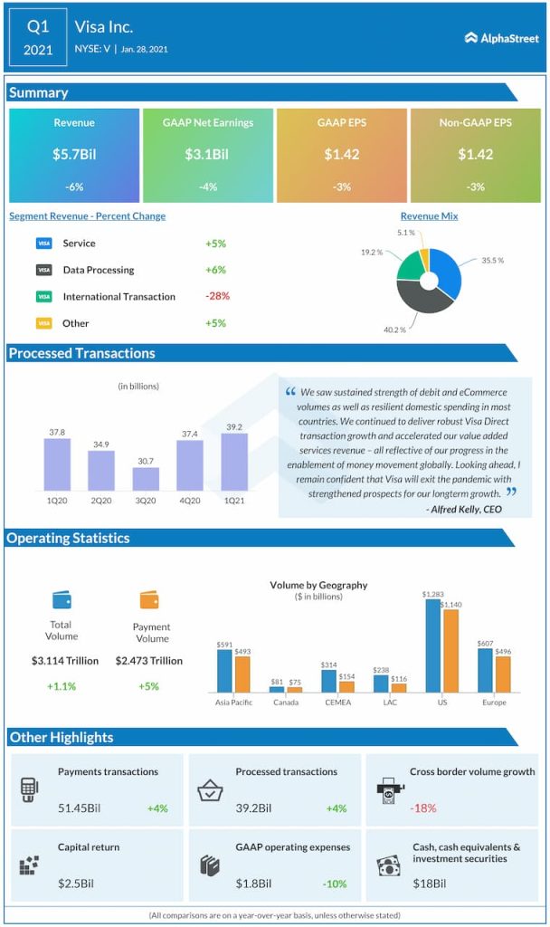 Net income decreased 4% to $3.1 billion while EPS dropped 3% to $1.42 both on a GAAP and adjusted basis.