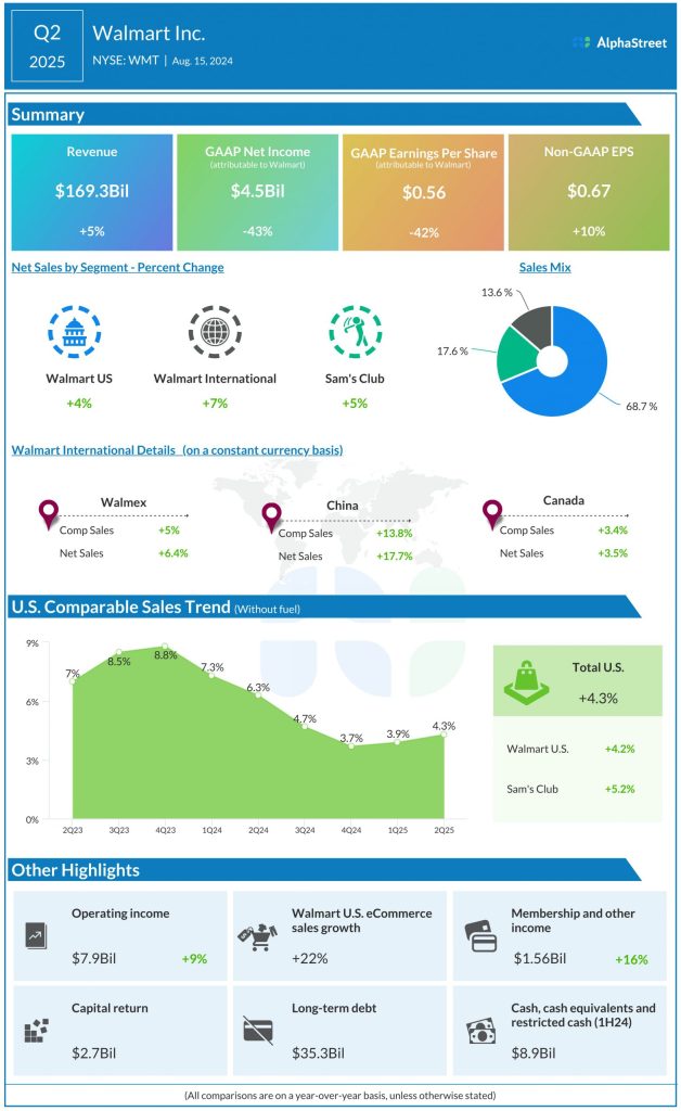 “Our business outside the U.S. continues to lift the total company in terms of sales and profit growth. Walmex had another strong quarter, and India Flipkart again delivered positive contribution margin, and PhonePe continues to deliver amazing growth in total payment volume. In China, strong membership trends in Sam’s Club continued to drive double-digit sales growth, and about half of our sales there are digital. We continue to gain market share, including in general merchandise, and transaction counts and unit volume are up across markets.”