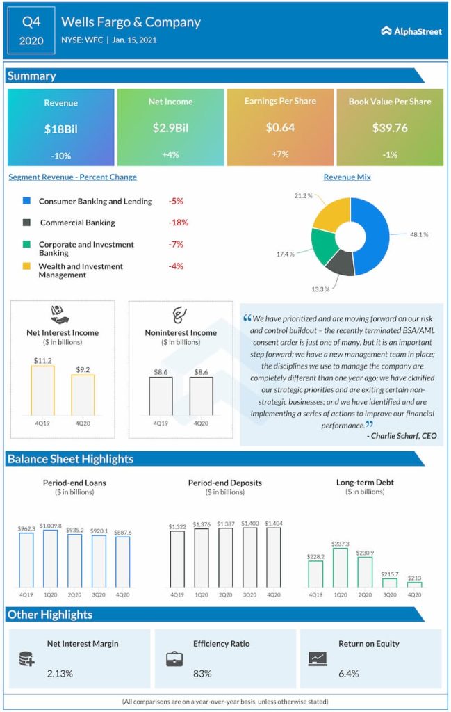 Wells Fargo & Company (NYSE: WFC) reported fourth quarter 2020 earnings results today.