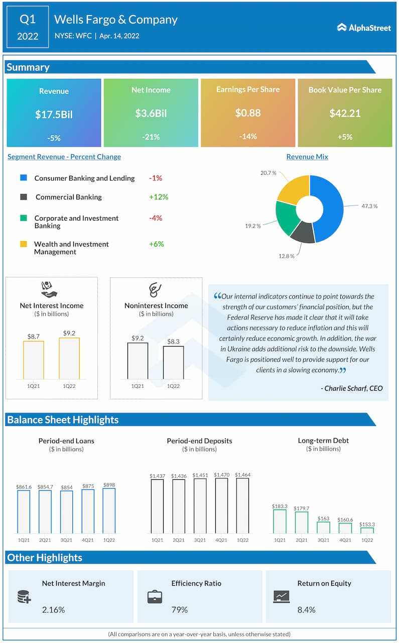 Wells Fargo & Company (NYSE: WFC) reported first quarter 2022 earnings results today.