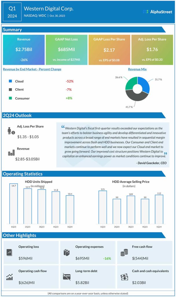 “Our Consumer and Client end markets continue to perform well and we now expect our Cloud end market to grow going forward. Our improved cost structure positions Western Digital to capitalize on enhanced earnings power as market conditions continue to improve,” said David Goeckeler, Western Digital’s CEO.