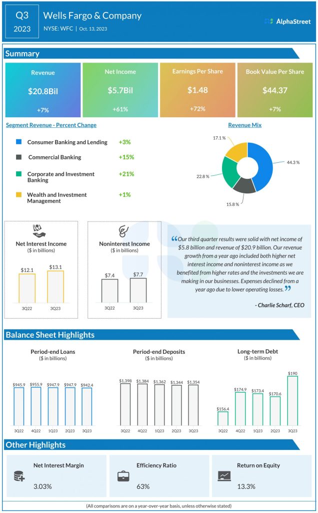 Wells Fargo & Company (NYSE: WFC) reported third quarter 2023 earnings results today.