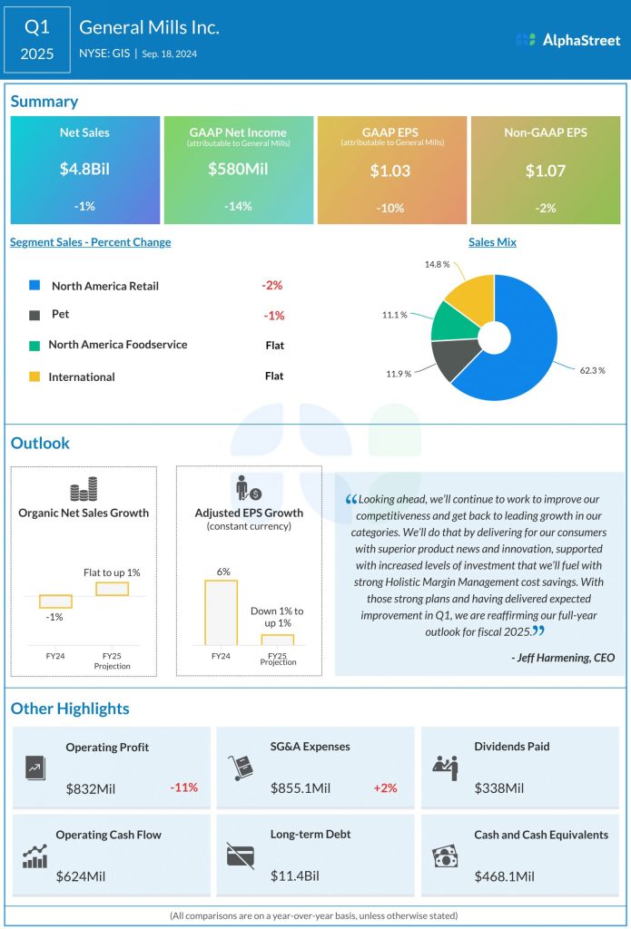 The Pet segment saw improvements in retail sales and market share during the first quarter and in categories like treats, the company expects product innovation to help drive gains during the back half of the fiscal year. Within the International segment, GIS saw market share growth in Europe and Australia in Q1 and although it faced headwinds in China, it has been seeing a pickup in sales in the region.