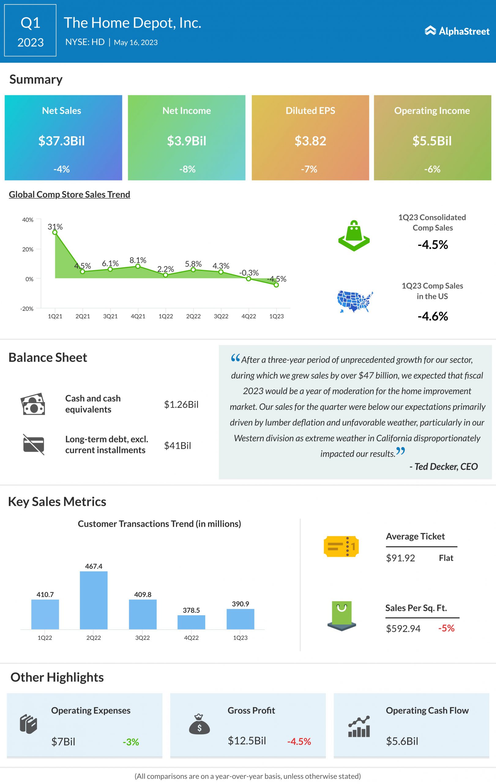 After witnessing strong growth over the past three years, Home Depot anticipated a moderation in the home improvement market during fiscal year 2023. As consumer spending remained pressured, the company saw softness in big-ticket discretionary categories during the first quarter.