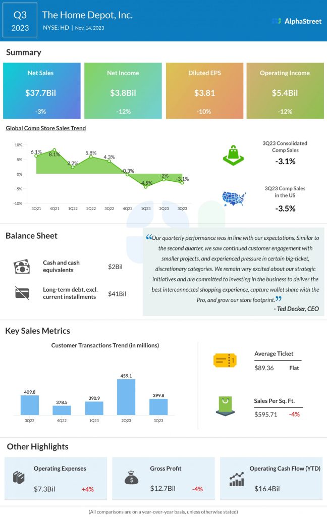 Home Depot has been facing challenges such as slow demand in big-ticket, discretionary categories, and lumber and copper wire deflation. Customers have been opting for smaller projects over bigger renovations due to a tough economic environment. Despite this, the company has remained relatively resilient, providing optimism over its prospects.