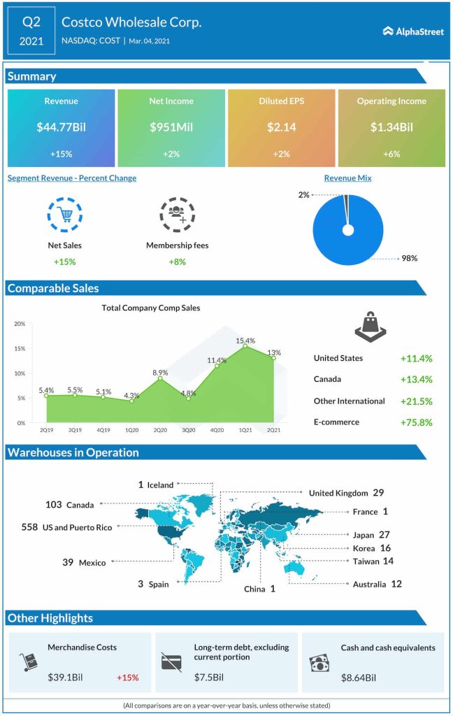 Costco’s margins remain under pressure from costs related to COVID-19, in the form of incremental employee compensation in manufacturing, production, and fulfillment. While wages are seen growing about 6% internationally, the ongoing cost-cutting measures would bring in a marked improvement compared to last year. In the past twelve months, the company incurred about $1.60 billion in pre-tax expenses related to the pandemic.