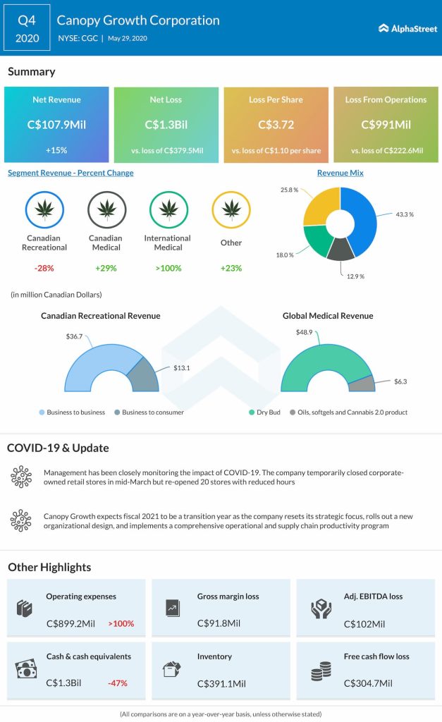 The recovery of Canopy Growth’s shares, after slipping to a multi-year low in March, was hampered by the dismal fourth-quarter performance. They closed the last session down 20% and continued to lose early Monday before business started. The stock has lost 14% since the beginning of the year and 57% in the past twelve months amid the pandemic-related selloff.