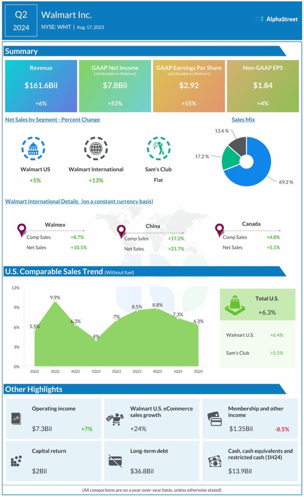 Walmart Inc. (NYSE: WMT) reported second quarter 2024 earnings results today.