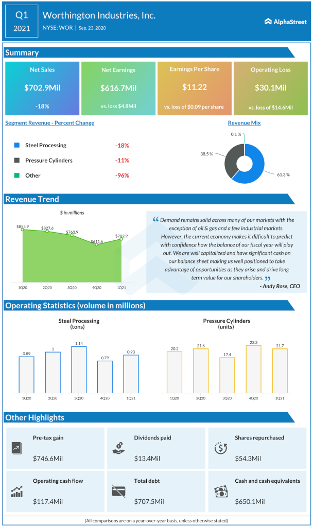 The diversified metals manufacturer had last week reported first-quarter financial results, where it swung to a profit of $616.7 million, from a loss a year ago, driven by the gains from its investment in Nikola Corporation (NASDAQ: NKLA). Worthington had partially liquidated its stake in the hydrogen fuel cell truck company before Nikola founder was embroiled in a slew of allegations.