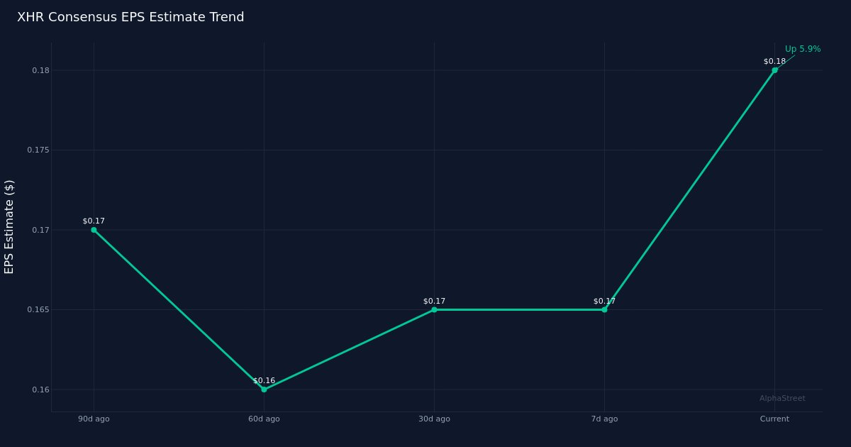 The year-over-year comparison points to solid earnings growth against a flattish revenue backdrop. Consensus EPS of $0.18 would represent a 20.0% increase from the $0.15 per share Xenia delivered in the first quarter of 2025. Revenue, by contrast, is expected to edge up just 0.4%, from $288.9 million a year ago to the current $290.1 million estimate. This divergence implies margin expansion and improved operational efficiency within the portfolio. Last year’s first quarter generated net income of $16.8 million on a net margin of 5.8%, establishing a baseline profitability level that the market will measure against when results are released.